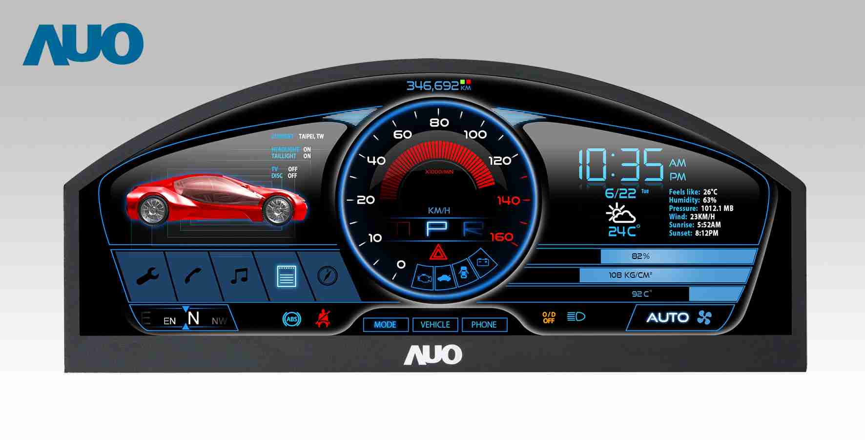 2121非凡 12.3吋超高解析异型切割车用面板,,,,拥有流线外观及精细画质